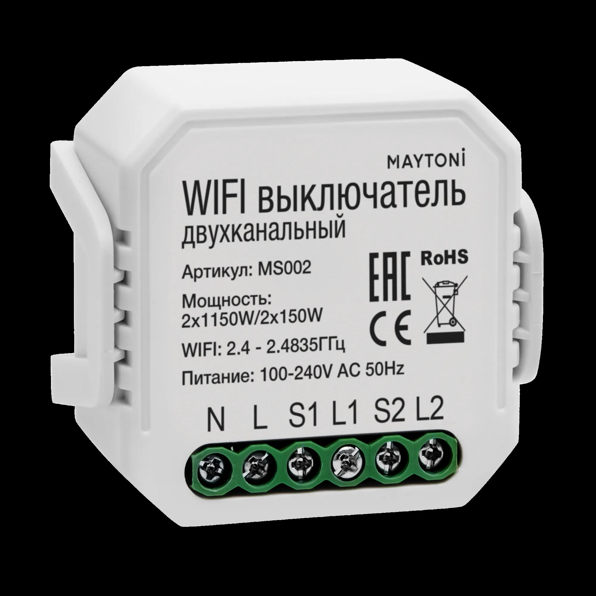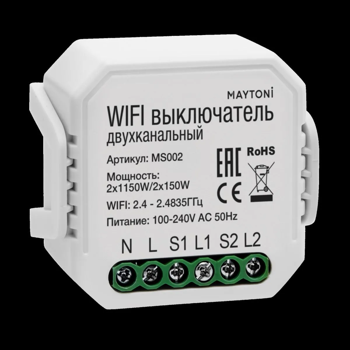 Wi-Fi выключатель двухканальный Maytoni Technical Smart home MS002 купить в Щёлково по лучшей цене