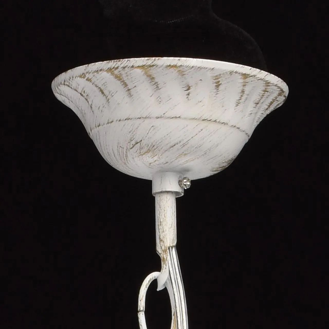 Металлическое основание матового белого цвета с золотистой патиной. Декор: металлические завитки бел