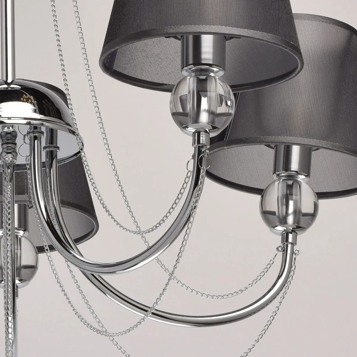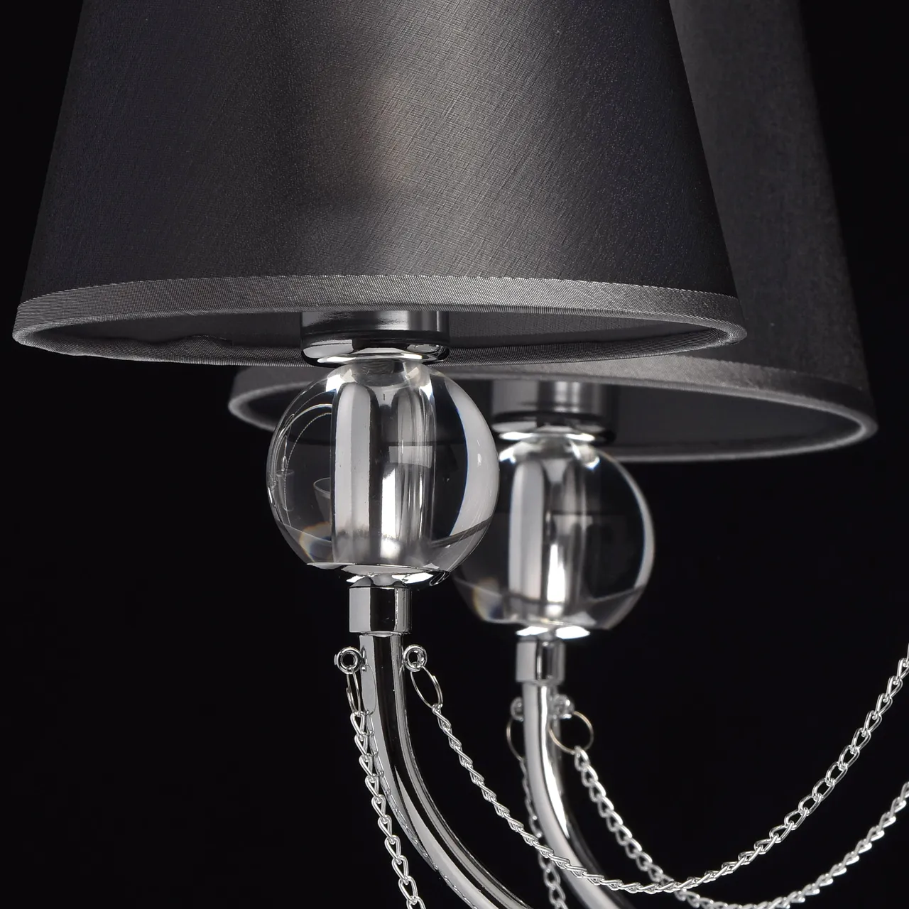 Металлическое основание цвета хрома. Плафоны - органза. Декор - хрусталь