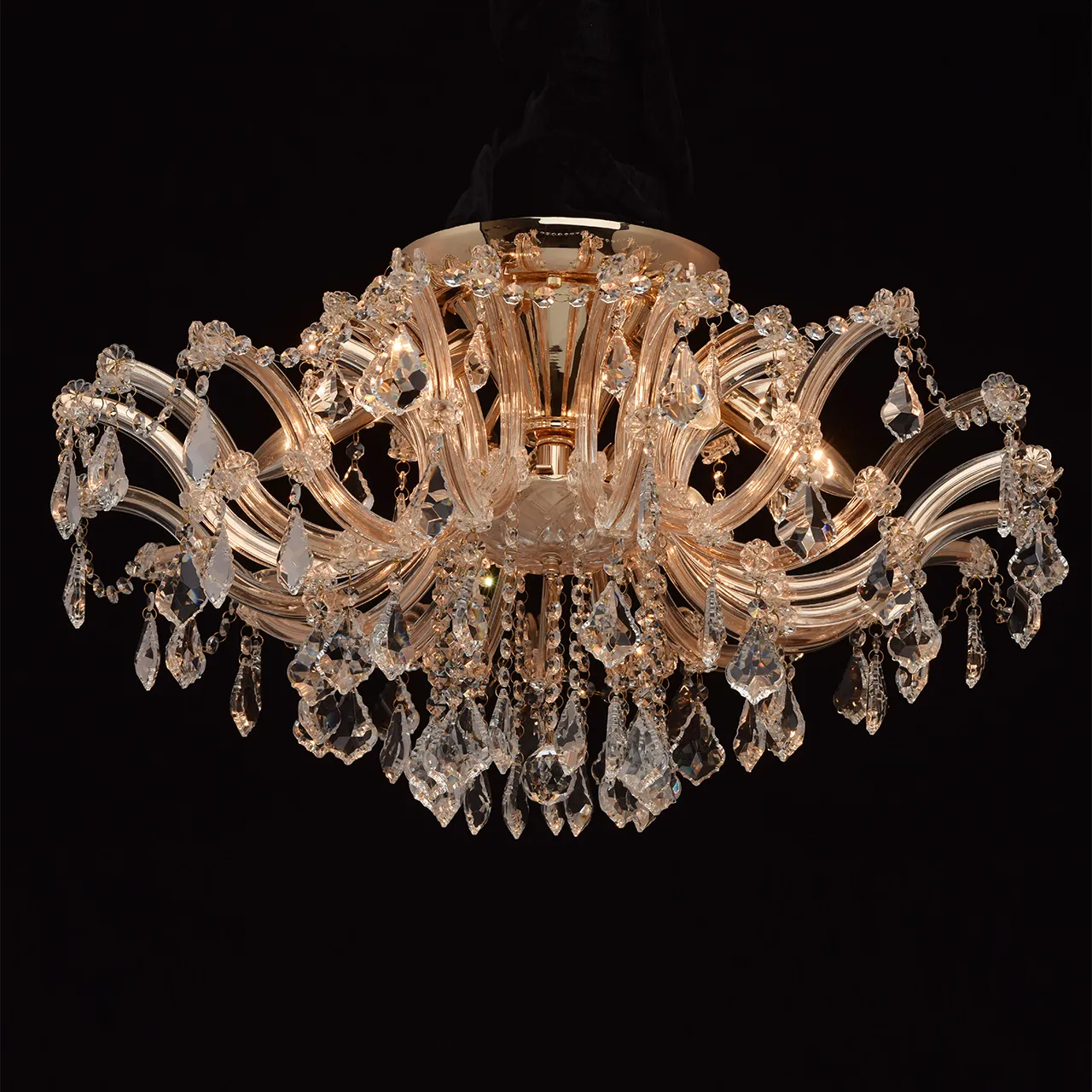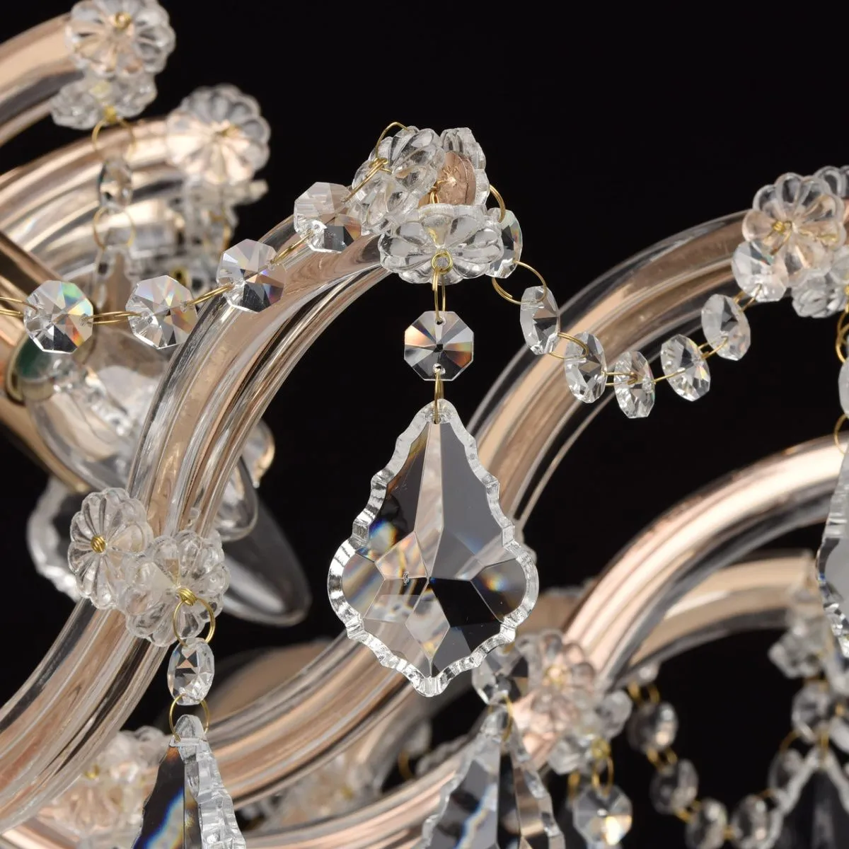 Металлическое основание цвета золота, декоративные элементы из хрусталя, стекла и акрила