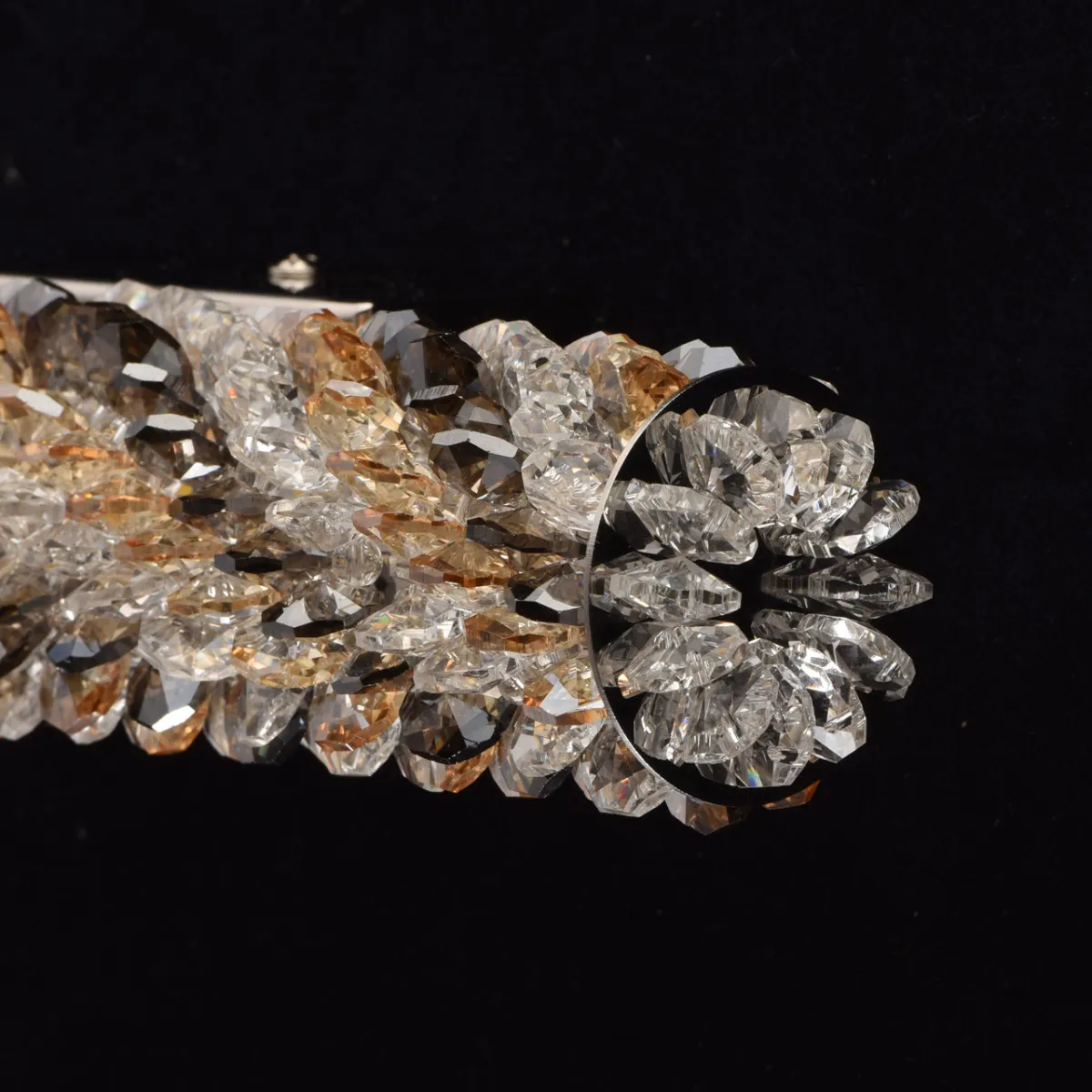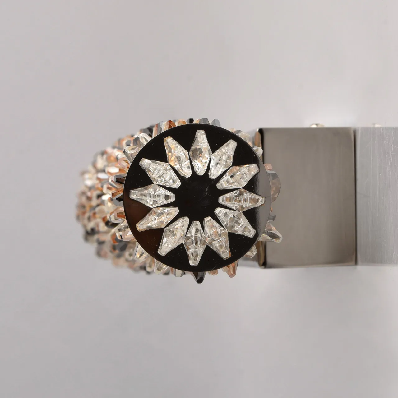 Основание из нержавеющей стали. Плафон: хрусталь прозрачный, дымчатого цвета и цвета янтаря.