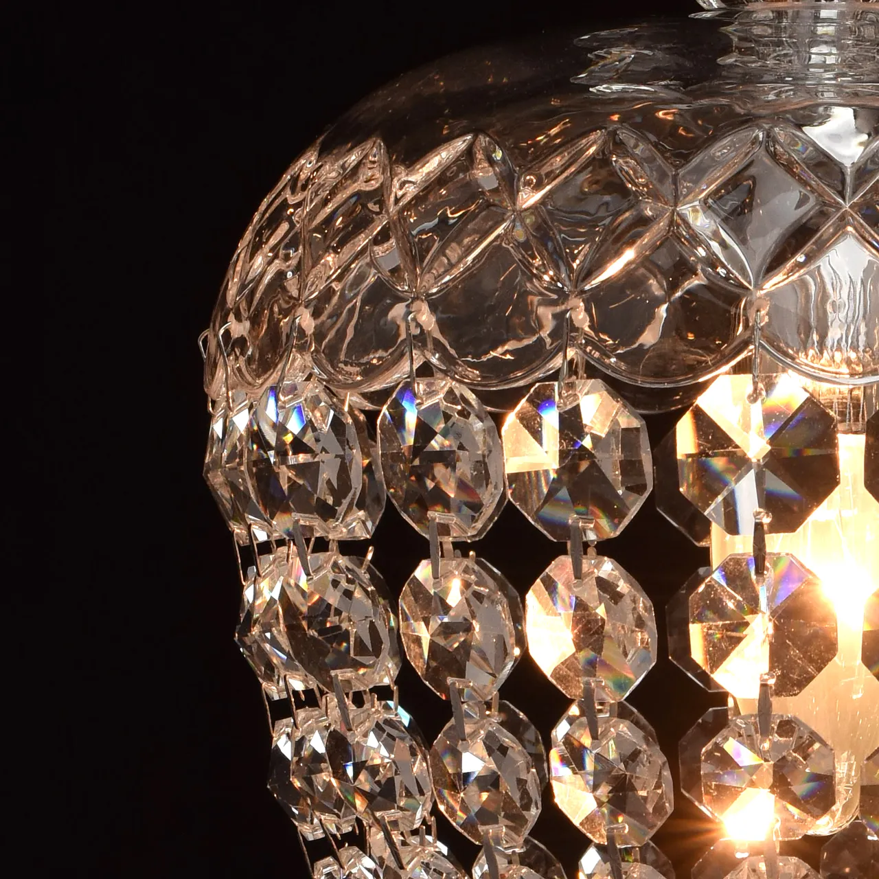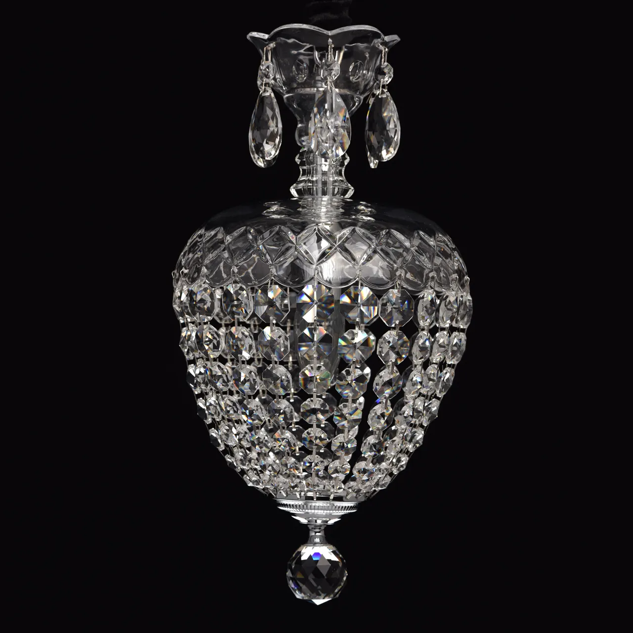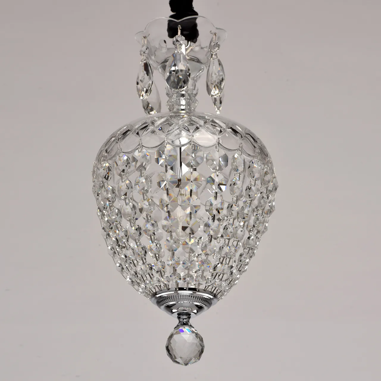 Металлическое основание цвета хрома.Подвески из хрусталя