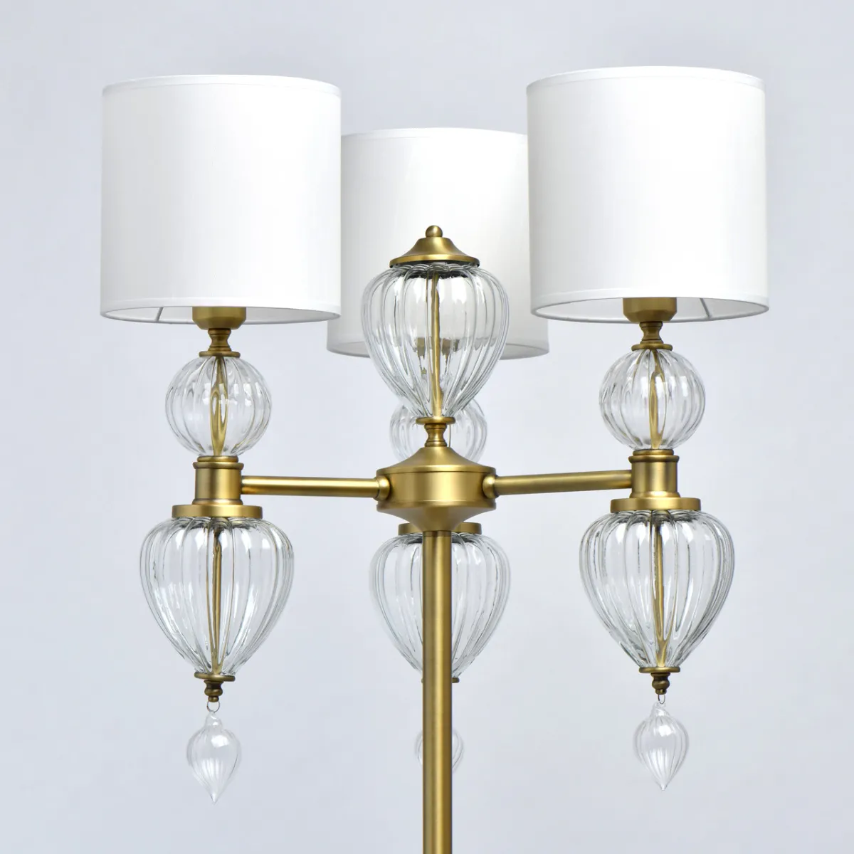 Основание/металл/латунь Абажур/текстиль/белый Декор/стекло